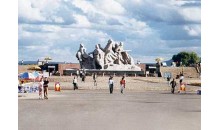 八女投江紀念地位于牡丹江畔的江濱公園。該群雕1988年落成,高13米,長8.8米采用花崗巖石材雕鑿而成,"八女投江"四個大字由全國政協(xié)主席鄧穎超生前書寫。站在這碩大的群雕前,無不使人思維翻滾,心潮澎湃,當年八女視死如歸,英勇戰(zhàn)斗的情景又呈現(xiàn)在人們的面前,1938年10月下旬,東北抗聯(lián)四、五軍西征婦女團,在指導員冷云帶領下,擔負著掩護大部隊轉移的任務,她們英勇抗擊日軍熊谷部隊的襲擊。