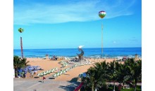 大角灣風景名勝區位于廣東陽江市海陵島西南端,三面群峰拱護,面向浩瀚南海,沙灘長2.5公里,寬100米,因狀似牛角,故名“大角灣”。這里地處南亞熱帶,全年日照時間長,年平均氣溫22.8℃,水溫23.5℃,降雨量1816毫米,年晴天數310天,四季氣侯宜人,素以陽光燦爛明媚,沙質均勻松軟,海水清澈純凈,空氣清新純潔而著稱,各類質素均達國際一類(級)標準,又因沙灘寬闊平坦。