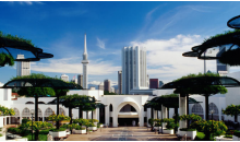 哥達京那巴魯市立清真寺座落在里卡士灣畔(Likas Bay),是一座典型的當(dāng)代伊斯蘭教建筑,是馬來西亞夕陽景觀最壯麗的清真寺之一。它建于里卡士灣的人造湖上,感覺有如浮在水面之上,因而得到“水上清真寺”的美稱。令人驚嘆的白色建筑物造型,與藍天完美的連成一體。清真寺于1997年建成,占地一公頃,可容納最多12,000名教徒祈禱。